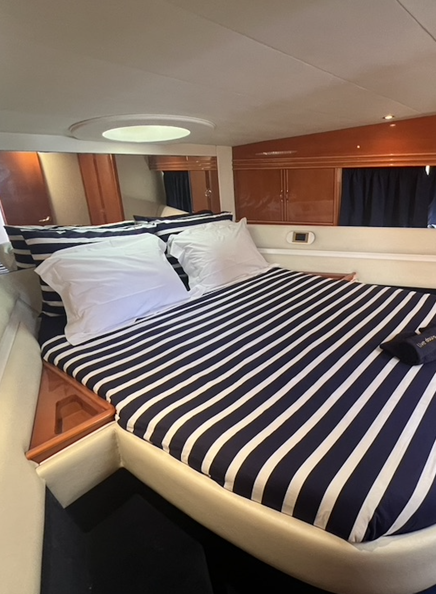 A/C, Wi-Fi, Bluetooth, and sound system in the interior, deck, and fly bridge